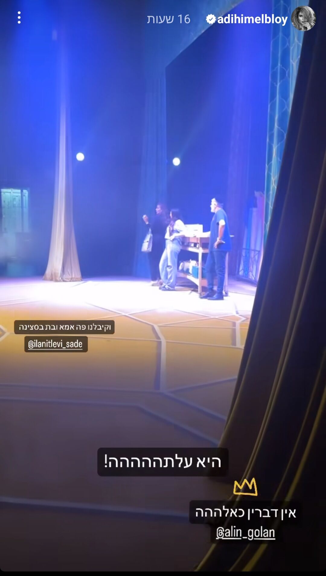 אלין גולן הצילה את המצב ברגע האחרון כאשר החליפה שחקנית במחזמר מברוכ בה מככבת אמה אילנית לוי-מצ"ב סרטון