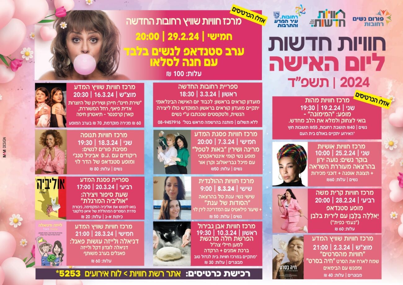 עיריית רחובות ורשת חוויות פתחו את אירועי יום האישה שיתקיימו בפברואר- מרץ עם נועה ירון, הדר לוי, מסיבת פורים עם הדר לוי, המופע המרכזי של ליטל שוורץ ועוד
