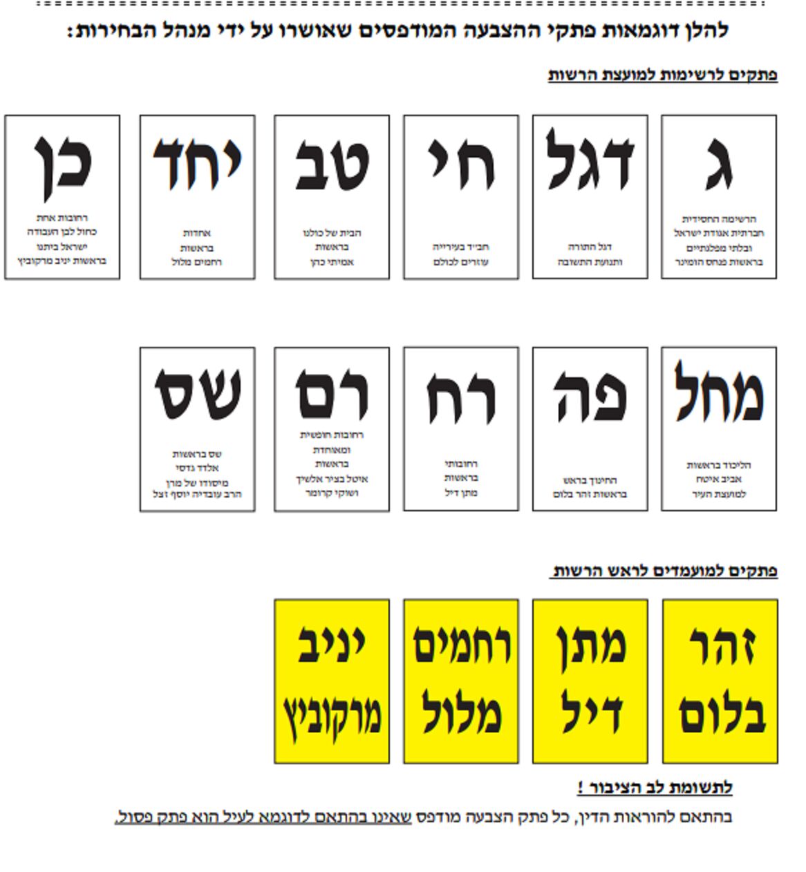 פתק לבן - לבחירת הרשימה אותו יש להכניס למעטפה הצהובה