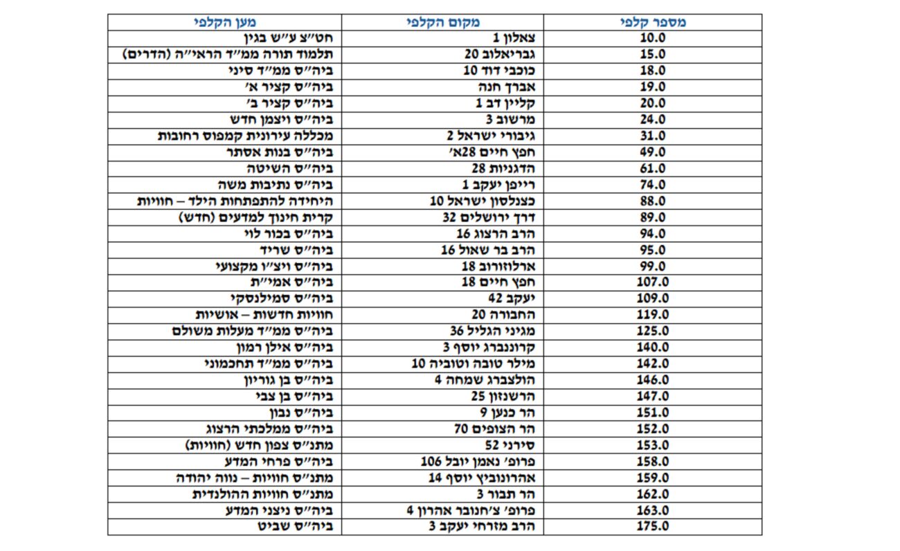 ירושלים, נתיבות (נגב מערבי), אשדוד, בני ברק, כפר סבא, פתח תקוה, ראשון לציון, עפולה, קריות.