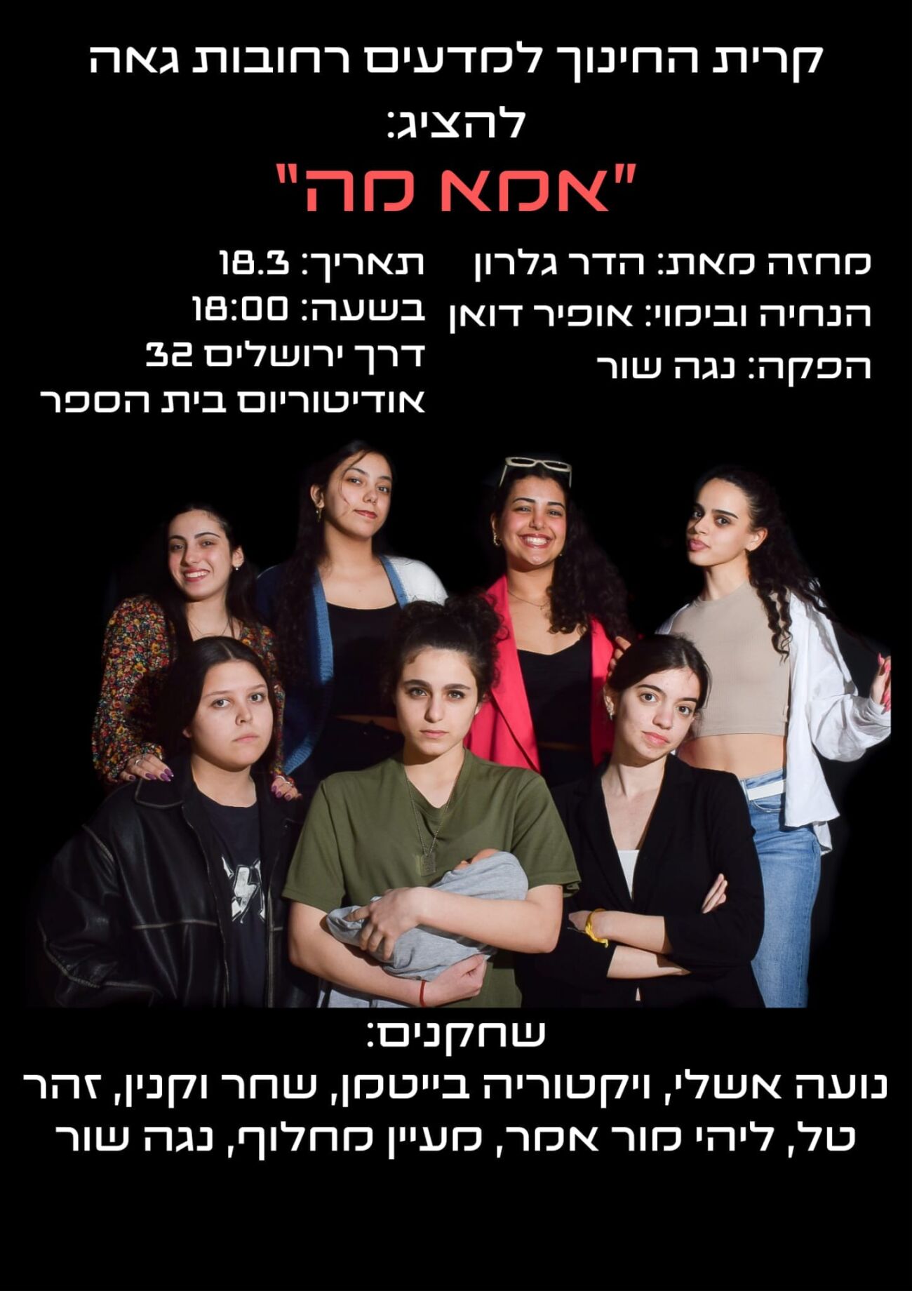 בהשתתפות: נועה אשלי, ויקטוריה בייטמן, שחר וקנין, זהר טל, ליהי מור אמר, מעיין מחלוף ונגה שור.