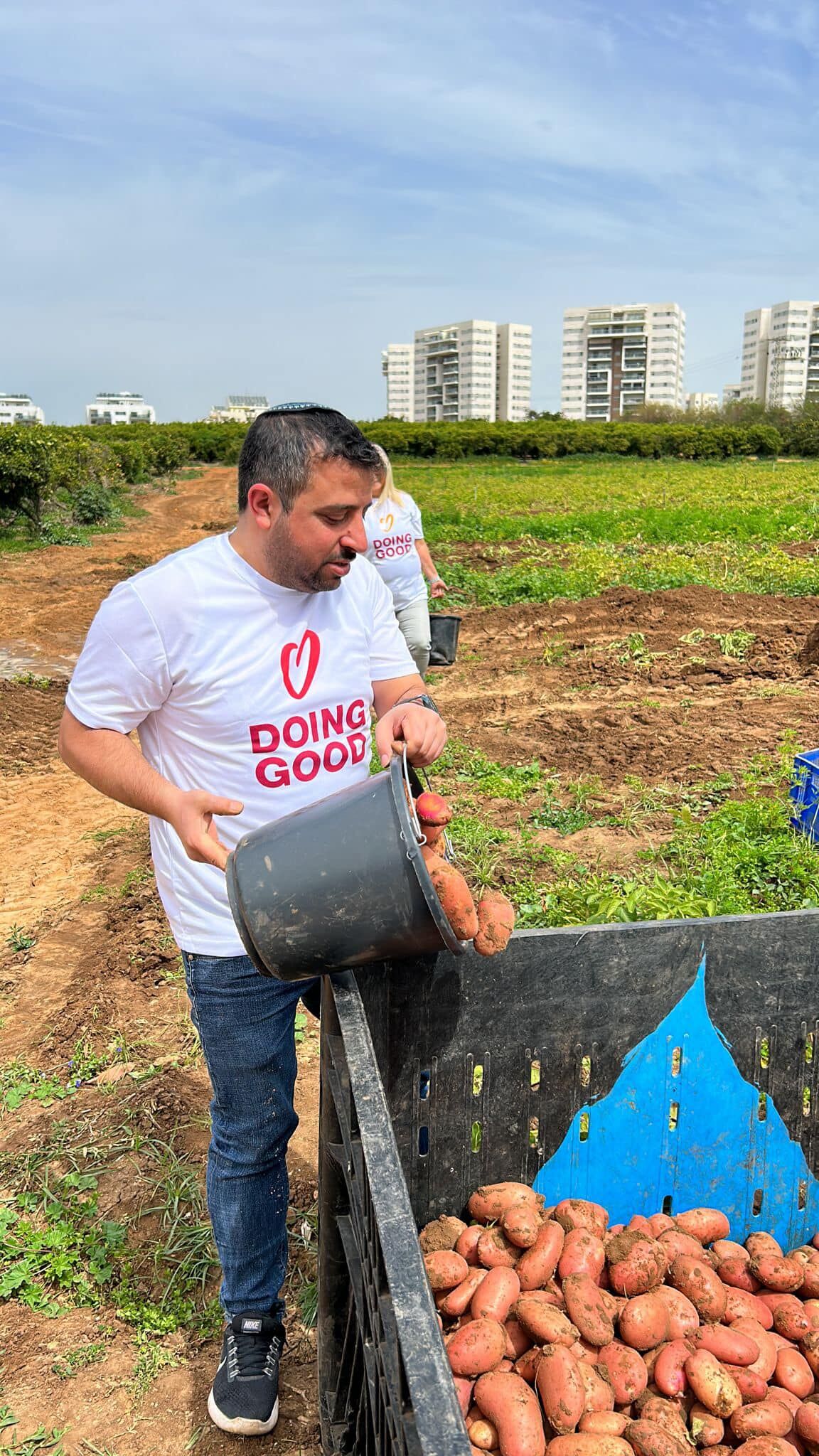 צוות מתנ"ס קריית משה ברחובות יצאו לסייע בקטיף בשדות עמותת הטוב והמטיב