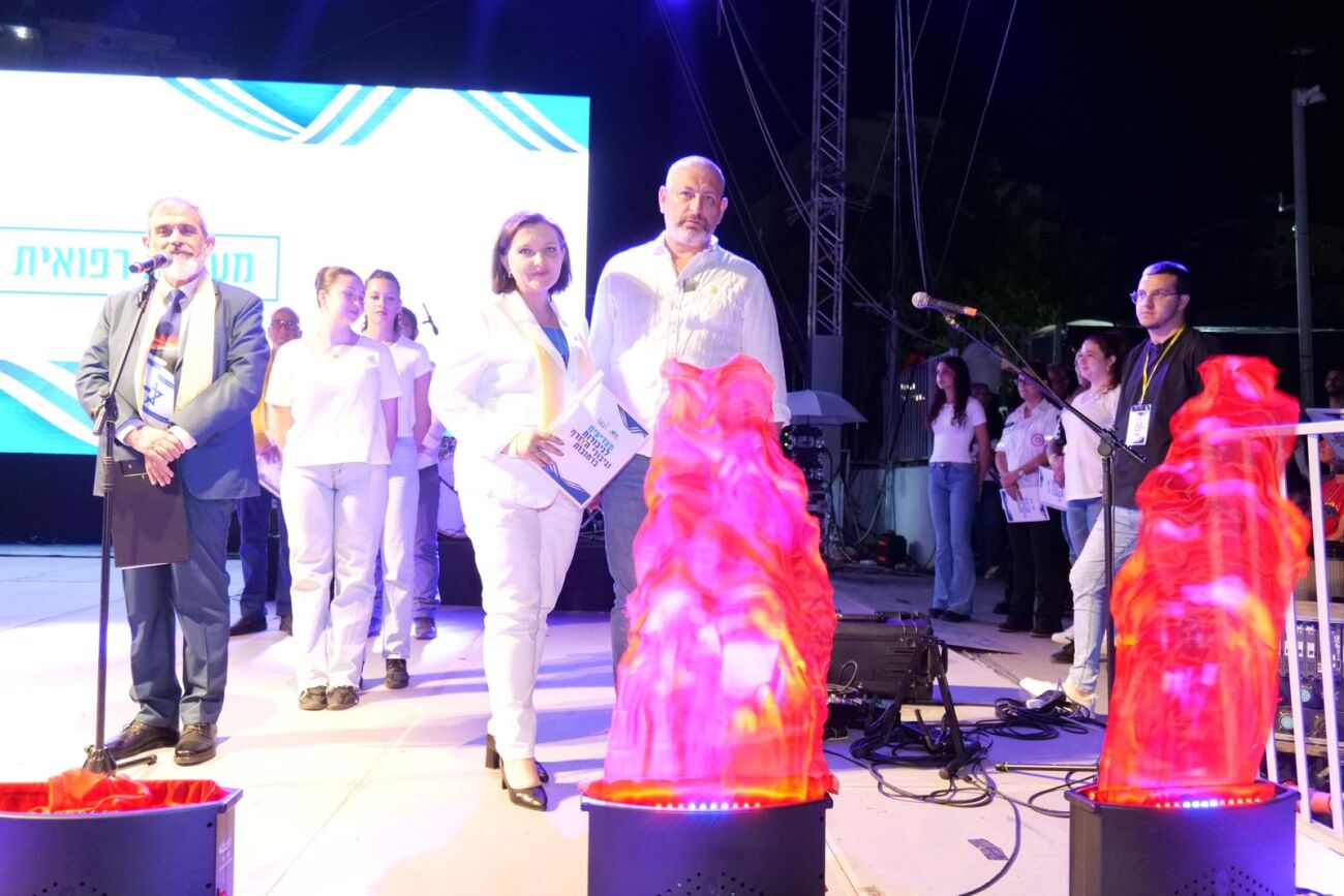על הבמה עלו להדליק משואות 20 תושבות ותושבי העיר שהובילו את מערכי ההתנדבות והסיוע לחיילי צה"ל, המשפחות המפונות מהדרום והצפון, פצועים, משפחות החטופים ועוד