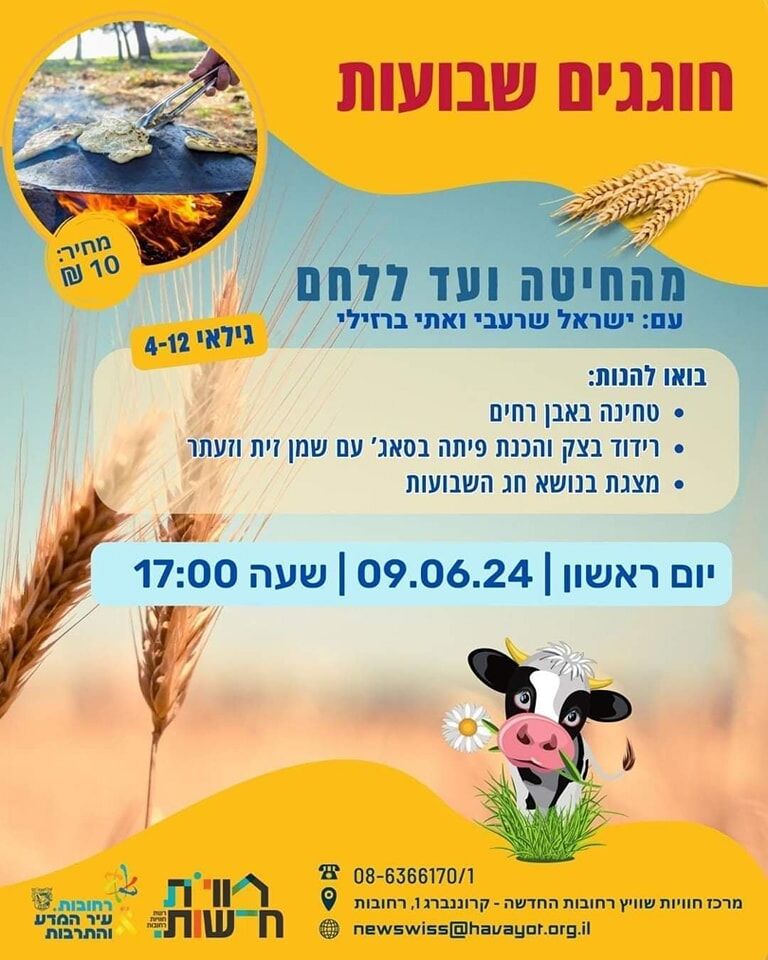 היום (חמישי 6.6) ובראשון ושני 9-10.6 יתקיימו אירועי שבועות במרכזי רשת חוויות אושיות, קריית משה, רחובות החדשה וספריית כפר גבירול