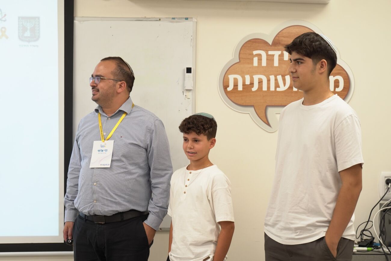 אליחי דדי מנהל קריית החינוך אמי"ת המר עם תלמידי כיתה ט' אילן ואייל