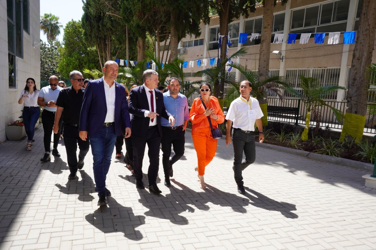 את השר והצוות המקצועי של משרד החינוך קיבלה תזמורת של תלמידות ותלמידי בית הספר שביט הלומדים בתכנית "סולמות" שניגנו מחרוזת שירי אהבה ותקווה ישראליים בכלי נשיפה ומזכירות מועצת התלמידים העירונית.