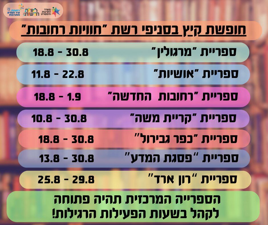 במהלך חודש אוגוסט יחולו שינויים בפעילות רשת הספריות של חוויות רחובות