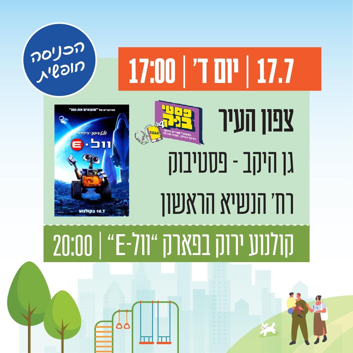 17.7 | יום ד' | גן היקב - רח' הנשיא הראשון | קולנוע בפארק | צפון העיר