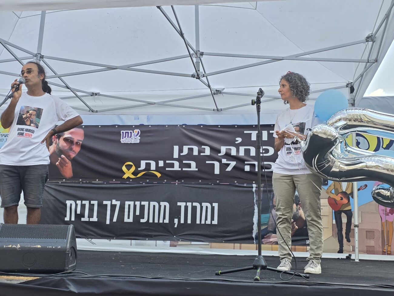 בתום דבריה הופרחו אל האוויר מאות בלונים כחולים המסמלים את החופש של נמרוד וכל החטופות והחטופים.