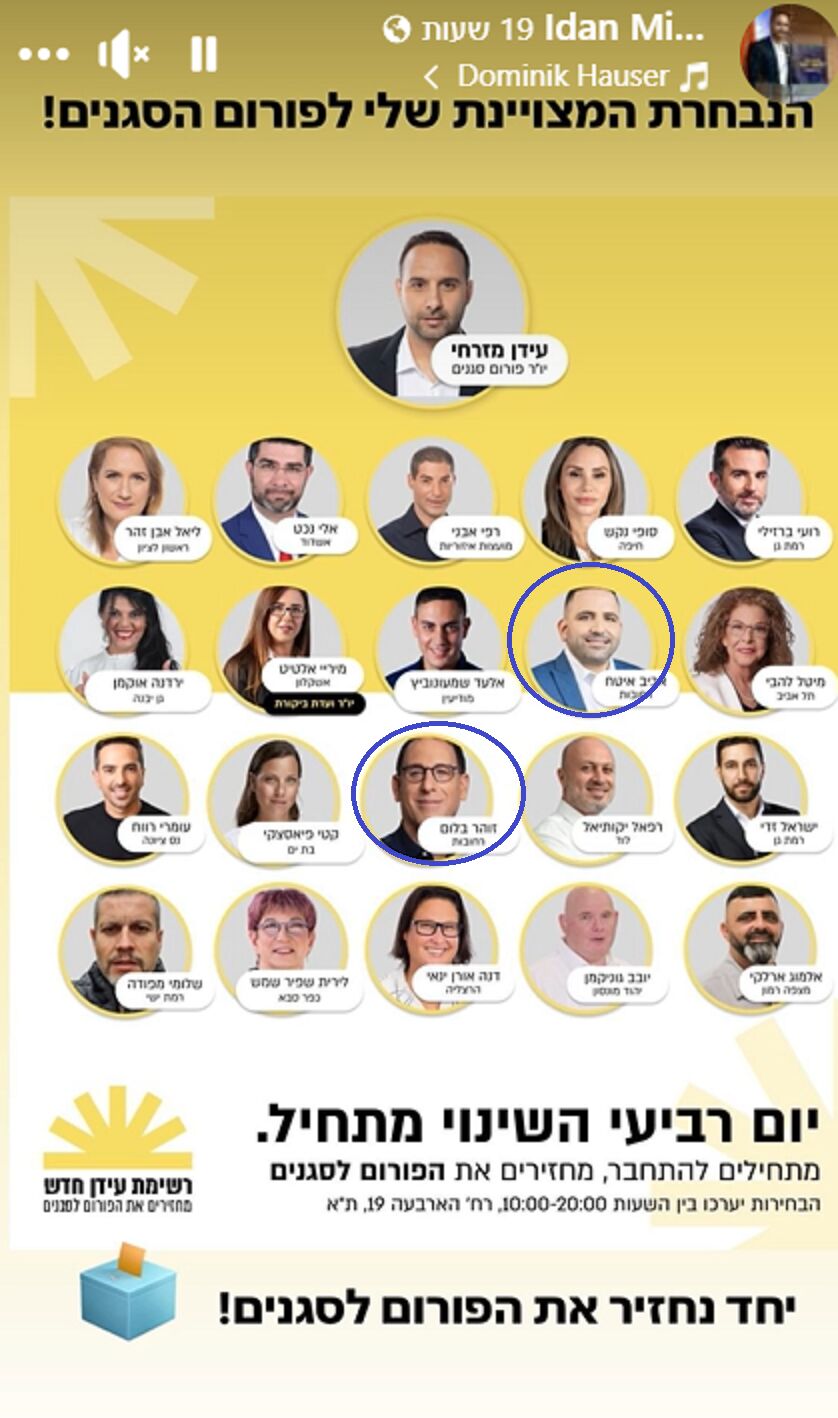 היום רביעי 24.7 מתקיימות הבחירות לתפקיד יו"ר פורום הסגנים ברשויות המקומיות המאגד את כל הסגנים ברחבי הארץ ונועד לשמור על מעמדם. על תפקיד היו"ר מתנודד עידן מזרחי שפרסם את רשימת הנבחרת שלו הכוללת את זהר בלום ואביב איטח