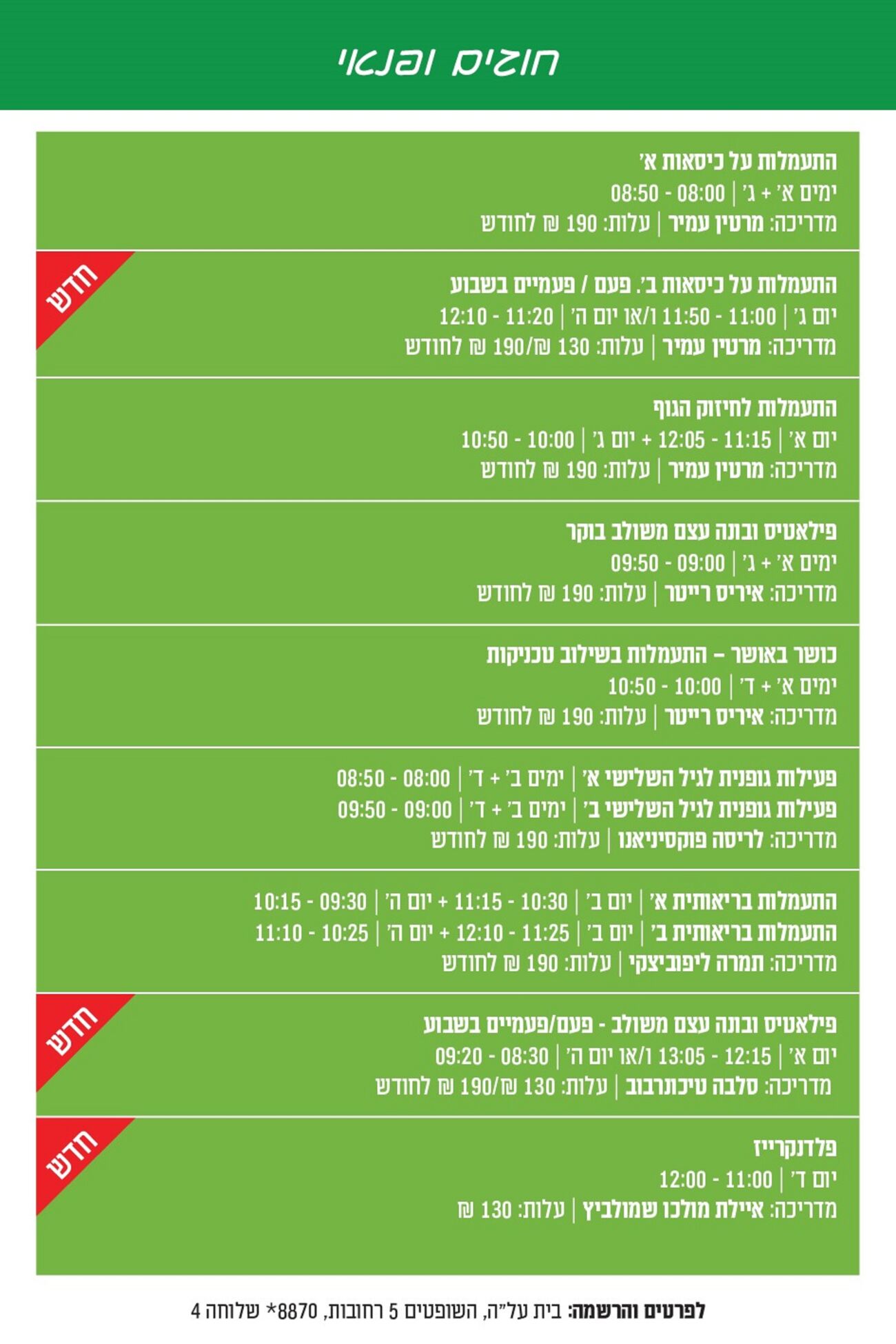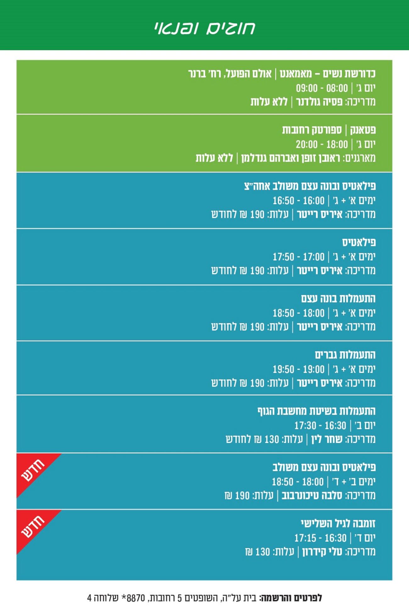 בית על"ה רחובות פותח את עונת 2024/25 עם מגוון רחב של חוגים: זומבה לגיל השלישי, התעמלות, ריקודי עם, לימודי שפות ועוד