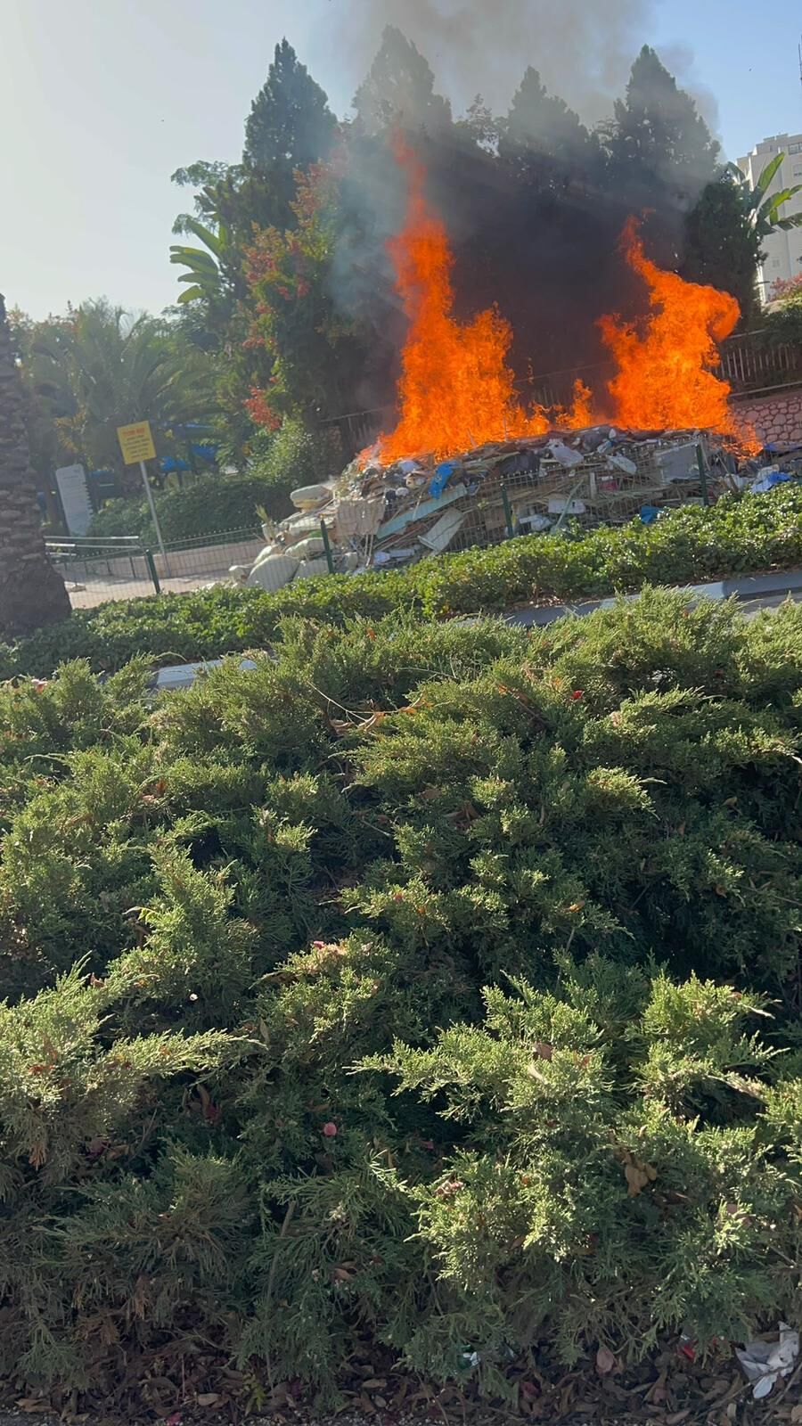 נהג משאית פינוי זבל קלט שהארגז שלו עולה באש והספיק לפרוק לפני שהמשאית עלתה באש כוחות כיבוי אש הגיעו לאזור