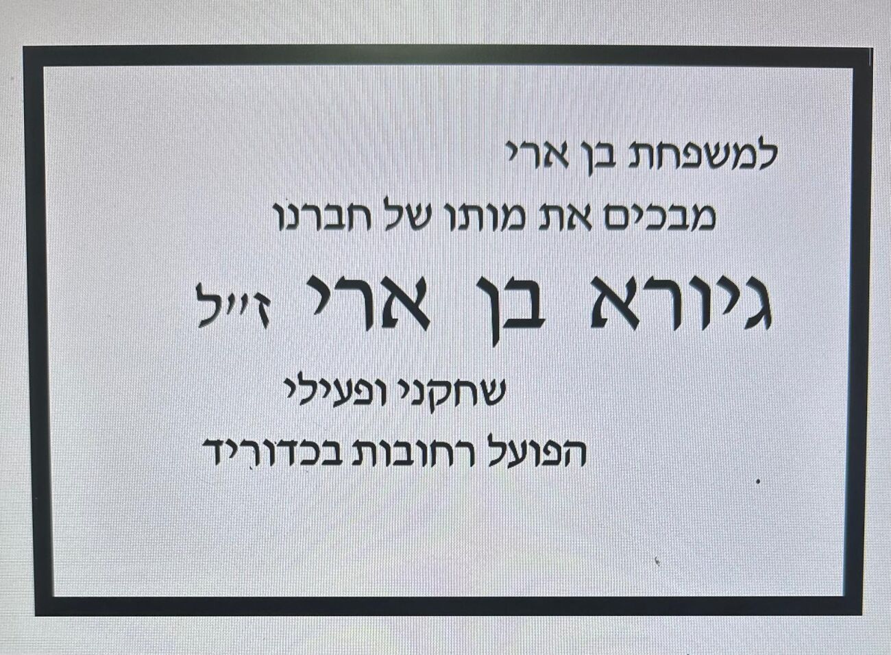 בצער רב ובתחושת אבל עמוקה, אנו נפרדים היום מגיורא בן ארי, חבר יקר, ספורטאי מצטיין ואיש ציבור מסור.
