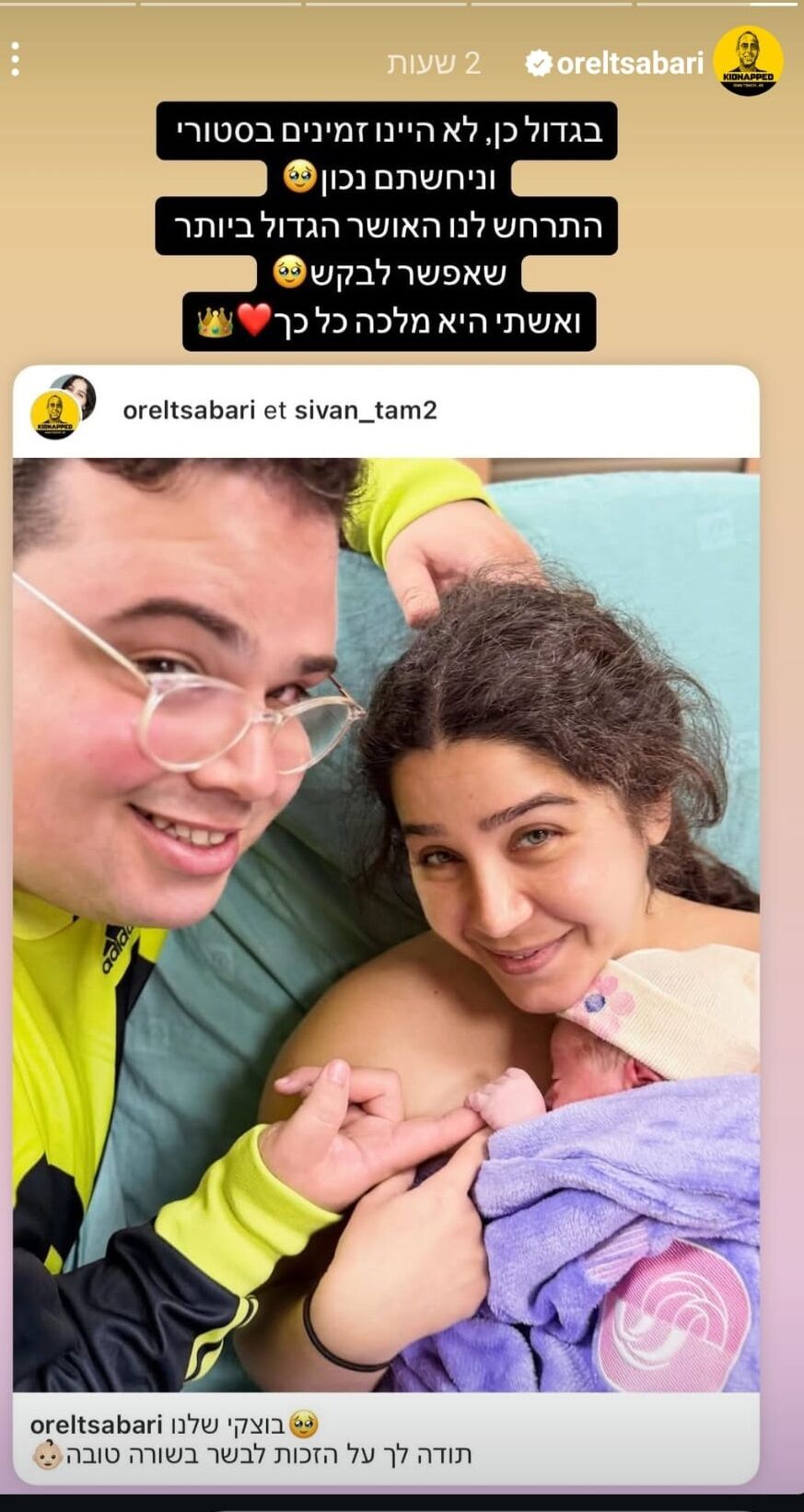 מזל טוב לאוראל צברי ואשתו סיוון שהפכו להורים עם הולדת בנם