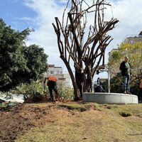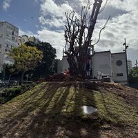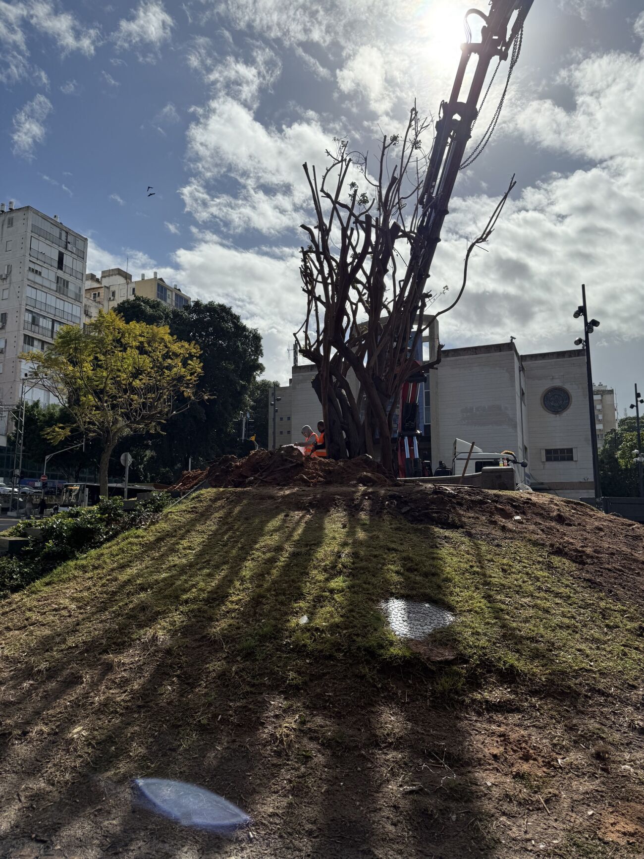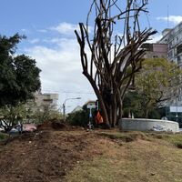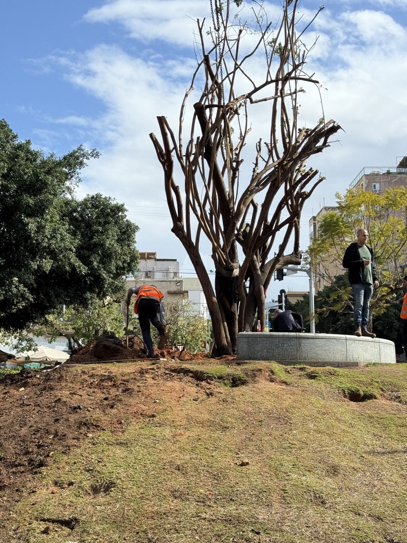 חילופי דורות בכיכר רמב"ם ברמת גן: עץ האלון הוותיק מת ונכרת ובמקומו נשתל עץ פלפלון דמוי אלה