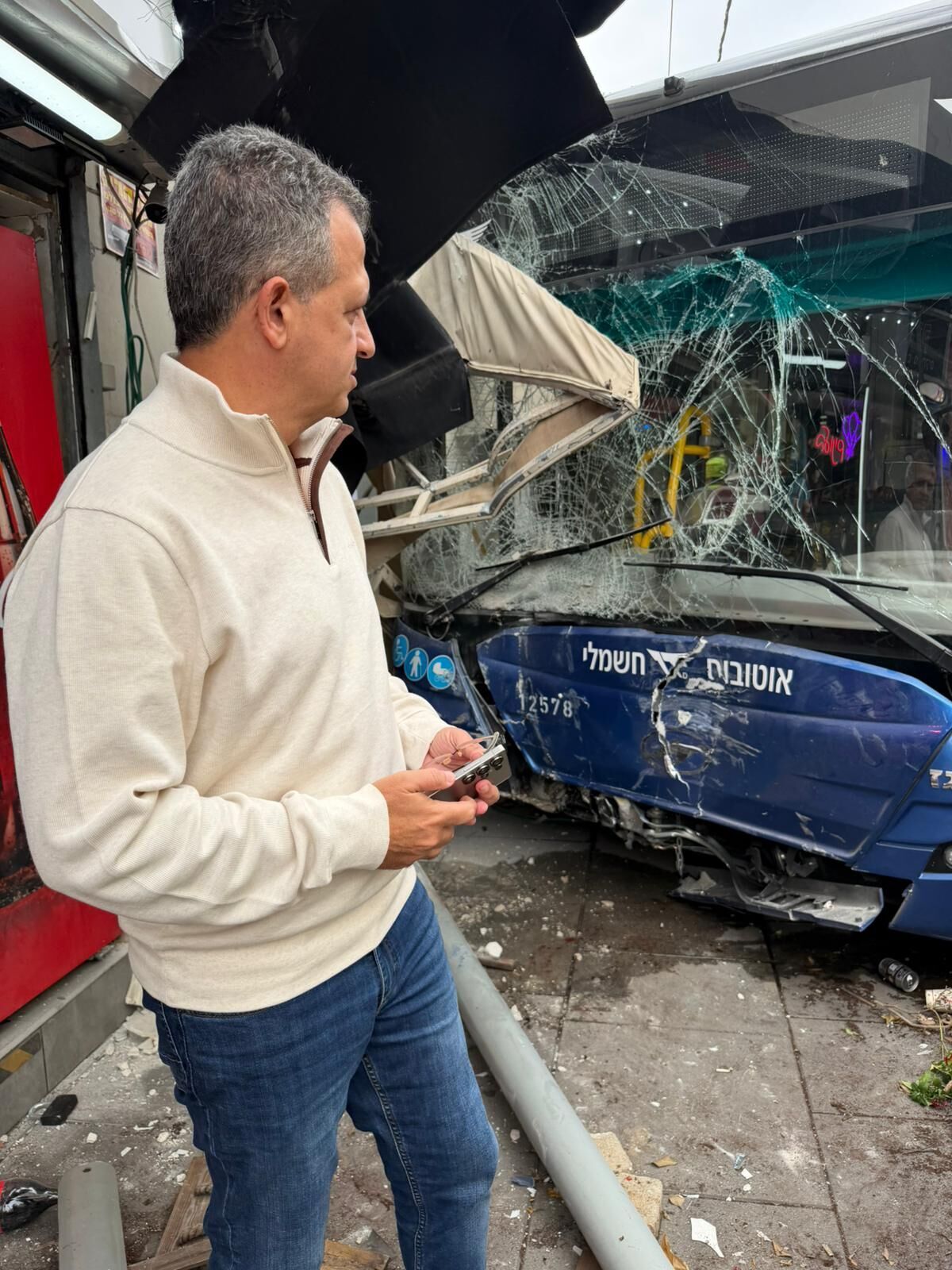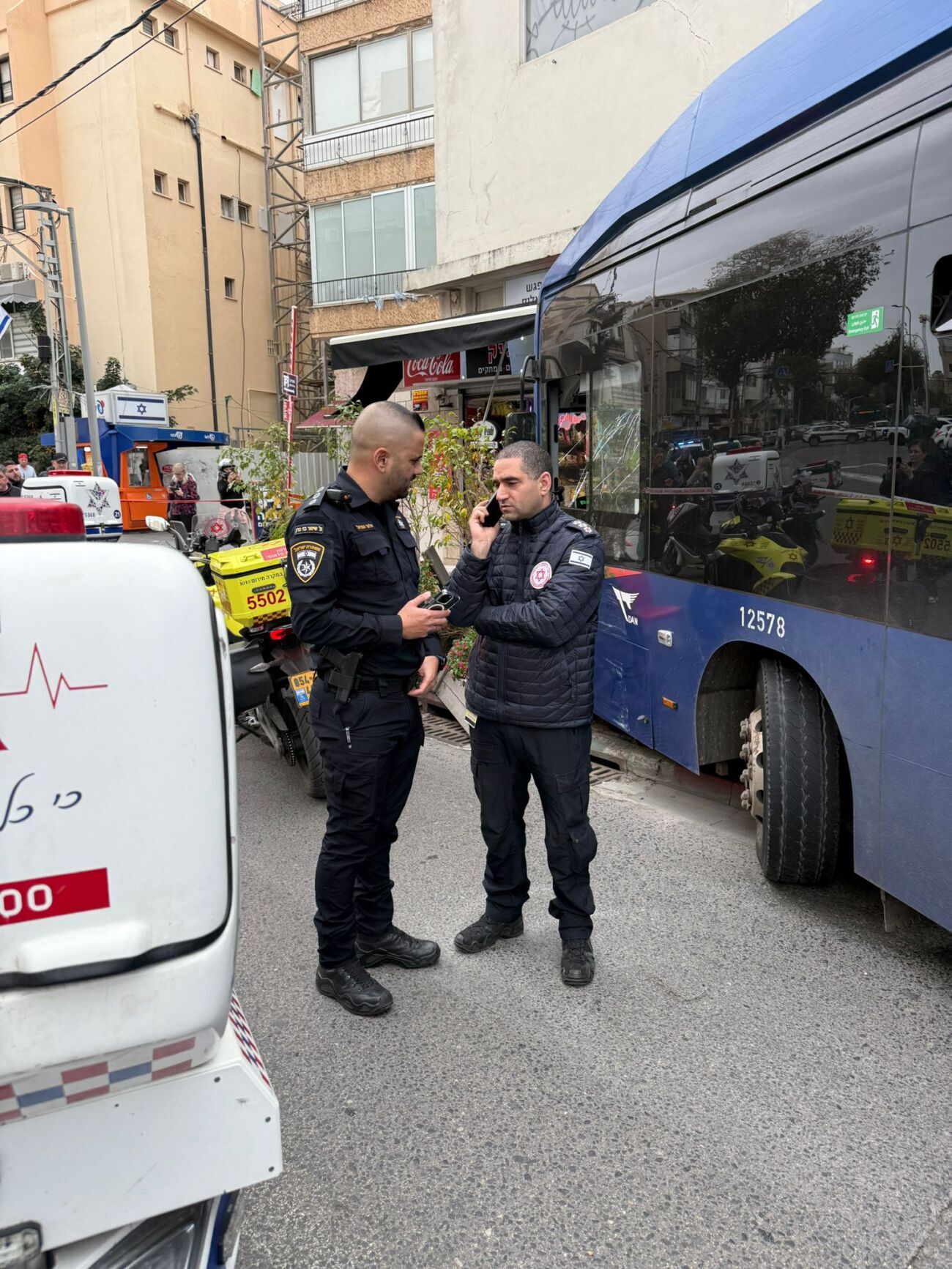 אלון מורעדין, חובש איחוד הצלה שהגיע ראשון לזירה, תיאר את המתרחש: "הייתי בסמיכות למקום ושמעתי זעקות לעזרה. נגשתי לסייע ועוברי האורח סיפרו לי כי ישנה צעירה הולכת רגל שעדיין לכודה תחת האוטובוס שהתנגש בחנות. הענקתי סיוע רפואי להולכת הרגל שסובלת מחבלות ופציעות קשות בגפיים".