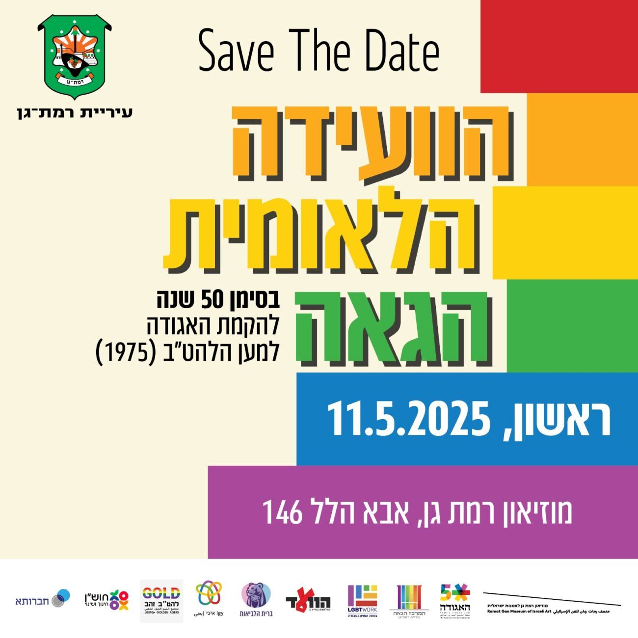 רמת גן: הוועידה הלאומית הגאה תתקיים לראשונה ב-11.5.2025 במוזיאון רמת גן, בסימן 50 שנה לאגודה למען הלהט"ב ובהשתתפות ארגוני הקהילה המרכזיים