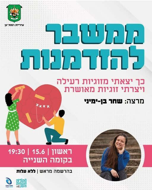 הרצאה "הקומה השנייה - Koma2" ברמת גן.: שחר בן-ימיני תשתף בכלים לזיהוי קשרים רעילים ובניית זוגיות בריאה בעידן הדייטינג של 2025