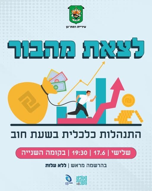 מתמודדים עם יוקר המחיה? עיריית רמת גן מציעה הרצאה שתסייע לכם למפות חובות, לבדוק פתרונות ולבנות תקציב שיאפשר לכם אוויר לנשימה