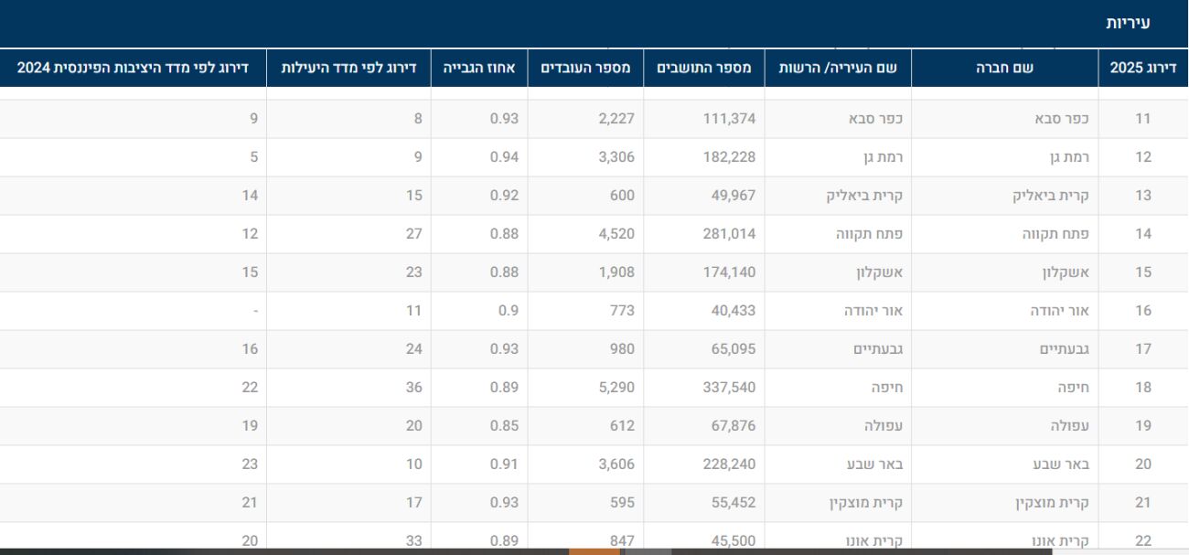 דירוג הרשויות המקומיות לשנת 2025 של Coface Bdi: רמת גן יורדת לעשירייה השנייה בדירוג.