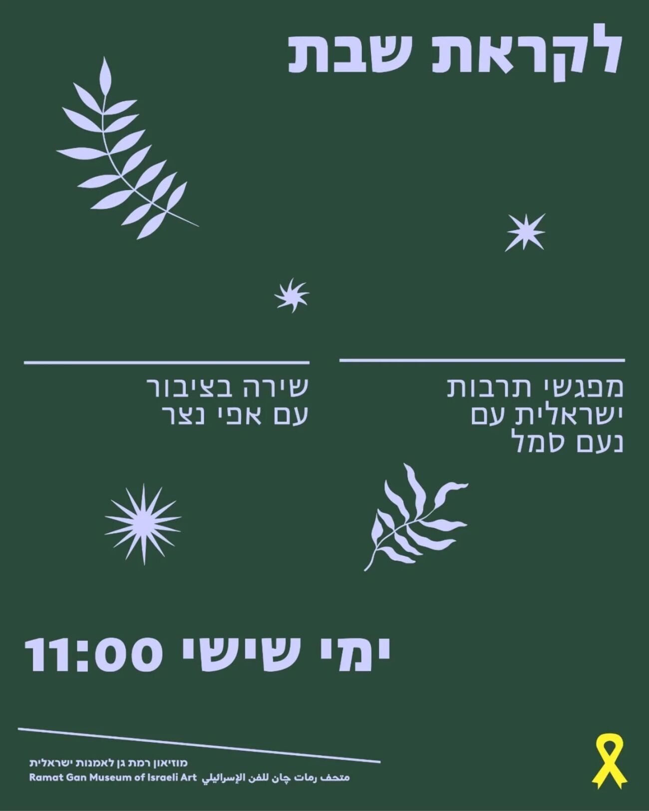 מוזיאון רמת גן לאמנות ישראלית משיק סדרת מפגשי תרבות חדשה בימי שישי: "לקראת שבת" עם אפי נצר, נעם סמל, טוביה צפיר, אבי נשר ועוד