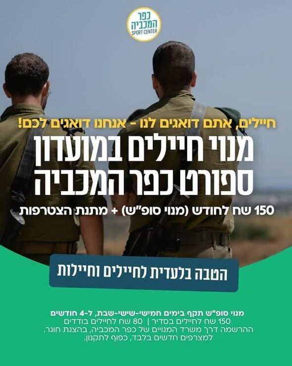 הטבה מיוחדת לחיילים בסדיר: מועדון ספורט כפר המכביה מציע מנוי סופ"ש ב-150 ש"ח לחודש, ולחיילים בודדים ב-80 ש"ח בלבד