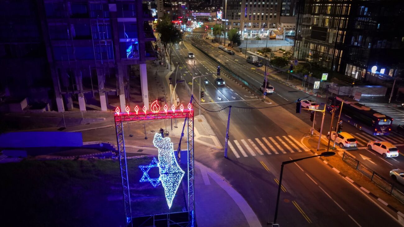 לקראת חג החנוכה: עיריית רמת גן הציבה מיצגים מוארים במוקדים שבהם פגעו טילים איראניים בעיר כסמל לניצחון האור על החושך