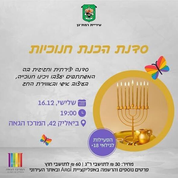 המרכז הגאה של רמת גן מזמין את הציבור להצטרף לסדנת הכנת חנוכיות המיועדת למבוגרים. במסגרת הפעילות, המשתתפים יהנו מחוויה יצירתית באווירת החג ויכינו חנוכייה אישית בעיצוב ייחודי.