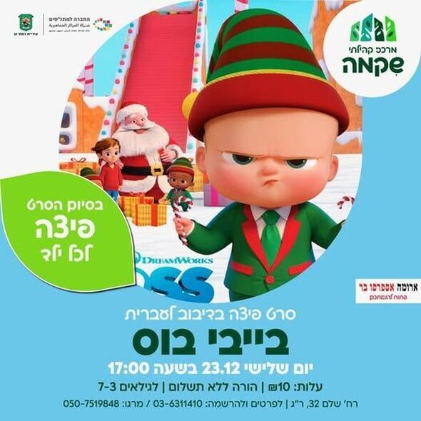 האירוע יתקיים ביום שלישי, ה-23.12, בשעה 17:00. במסגרת הפעילות יוקרן סרט לילדים, ובסיומו תוענק פיצה לכל ילד המשתתף באירוע.