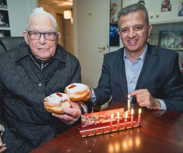 ראש עיריית רמת גן הדליק נר חנוכה עם ד"ר גבריאל ויסמן, הקב"ן הראשון של צה"ל וניצול שואה בן 97