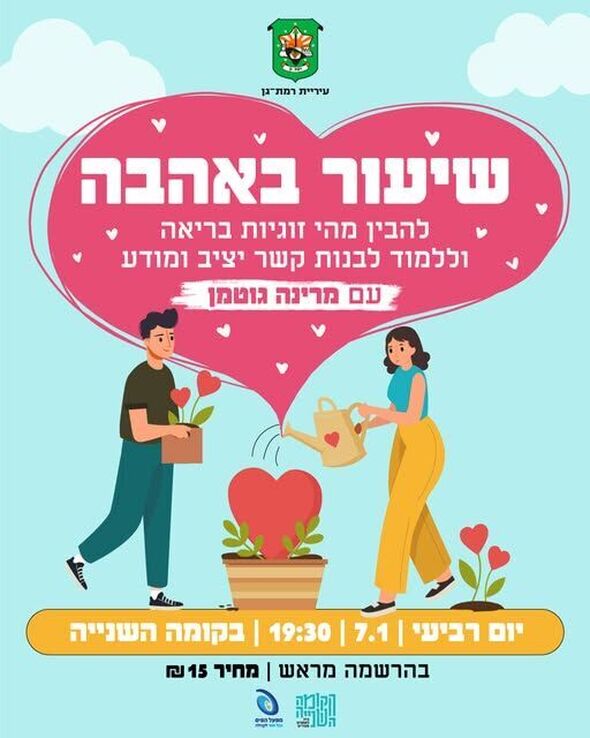 סדנה ליצירת זוגיות בריאה עם כלים מעשיים לבחירת בן זוג ותקשורת נכונה תתקיים יום רביעי 07.01.26 ב"קומה השנייה" ברמת גן