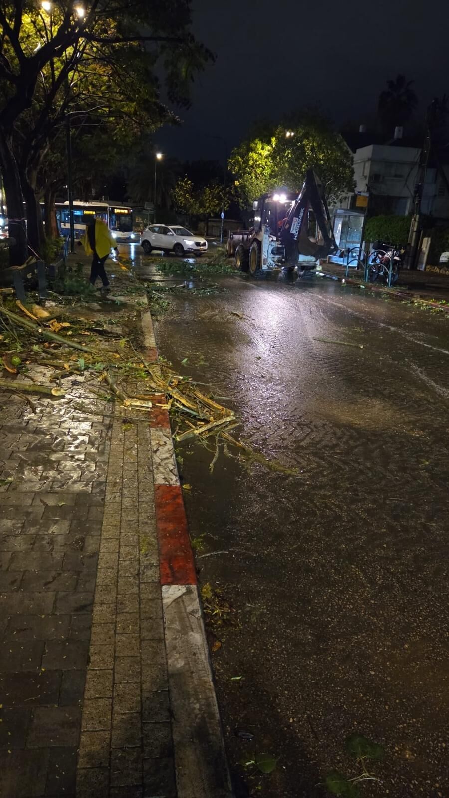 צוותים מתוגברים של אגף שפ״ע ואגף התשתיות פעלו לאורך כל הלילה ברחבי העיר, בליווי ניידות הפיקוח העירוני של יחידת סע"ר. הצוותים עסקו בפינוי עצים, ענפים וגזם שנפלו, בתפעול מערכות הניקוז ובשאיבת מים, במטרה למנוע הצפות ולהסיר מפגעים המסכנים את שלום הציבור.