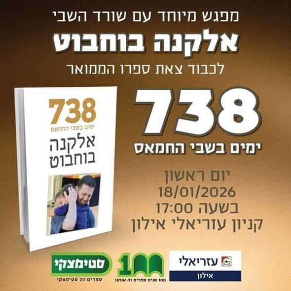 מפגש מיוחד בקניון עזריאלי אילון ברמת גן: שורד השבי אלקנה בוחבוט ישיק את ספרו ״738 ימים בשבי החמאס״ ביום ראשון ה-18.01.26