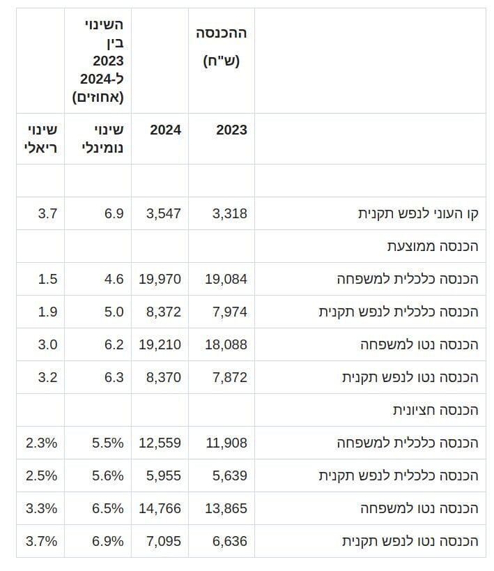 קו העוני ליחיד עומד השנה על 3,547 ש"ח, עלייה של 229 ש"ח בהשוואה לשנת 2023. עבור זוג, קו העוני עומד על 7,095 ש"ח. מי שהכנסותיו נמוכות מסכומים אלו נחשב כנמצא במצב של עוני. למרות העלייה הריאלית בהכנסה, הדוח מצביע על כך ש-28.1% מהישראלים חיים באי-ביטחון תזונתי מסיבות כלכליות, וביניהם כמיליון ילדים. כ-26% מהישראלים אינם מצליחים לממן מזון בריא.