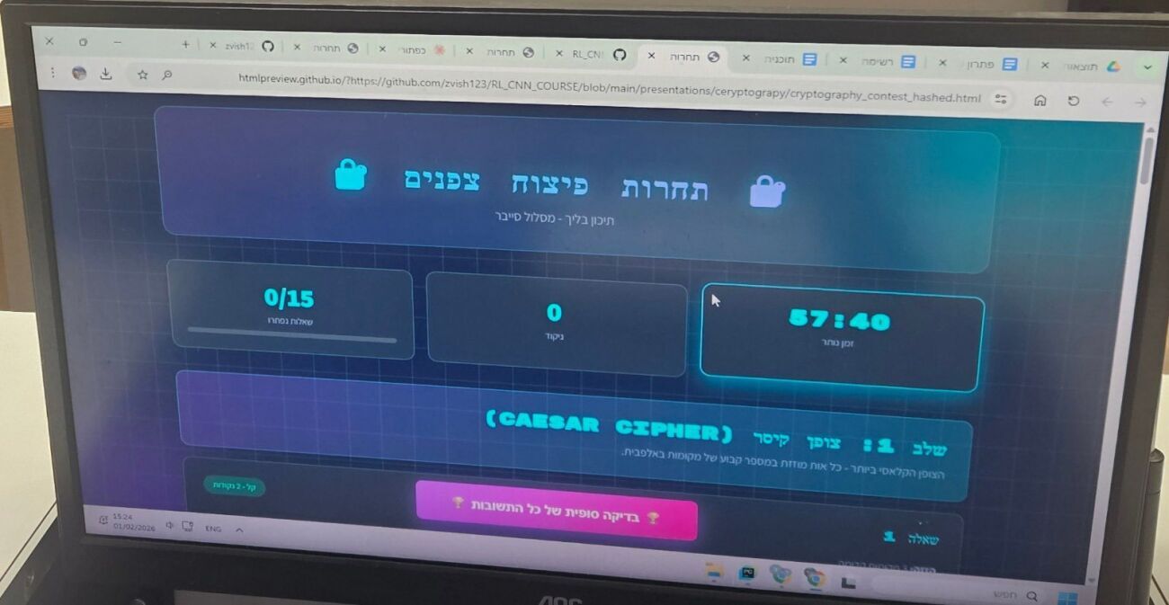 תלמידי מגמת הסייבר בתיכון בליך ברמת גן השתתפו בתחרות פיצוח צפנים מאתגרת: הקבוצה המובילה פתרה 14 מתוך 15 אתגרים בתוך שעה אחת בלבד