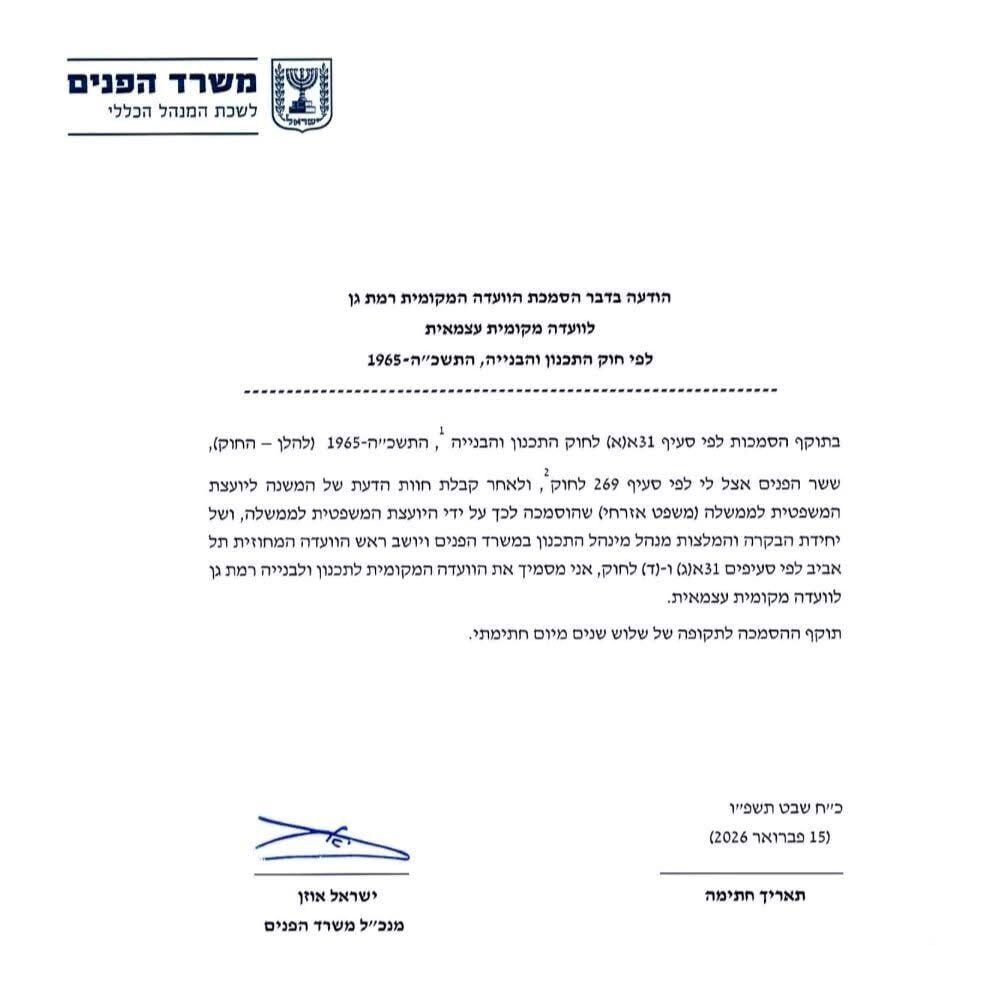 בשורה משמעותית לתחום התכנון והבנייה ברמת גן: מינהל התכנון ומשרד הפנים העניקו לוועדה המקומית בעיר מעמד של "וועדה עצמאית". ההחלטה התקבלה אתמול (ראשון, 15 בפברואר) ומשמעותה הרחבת סמכויות השיפוט והניהול של העירייה בנושאי נדל"ן ופיתוח.