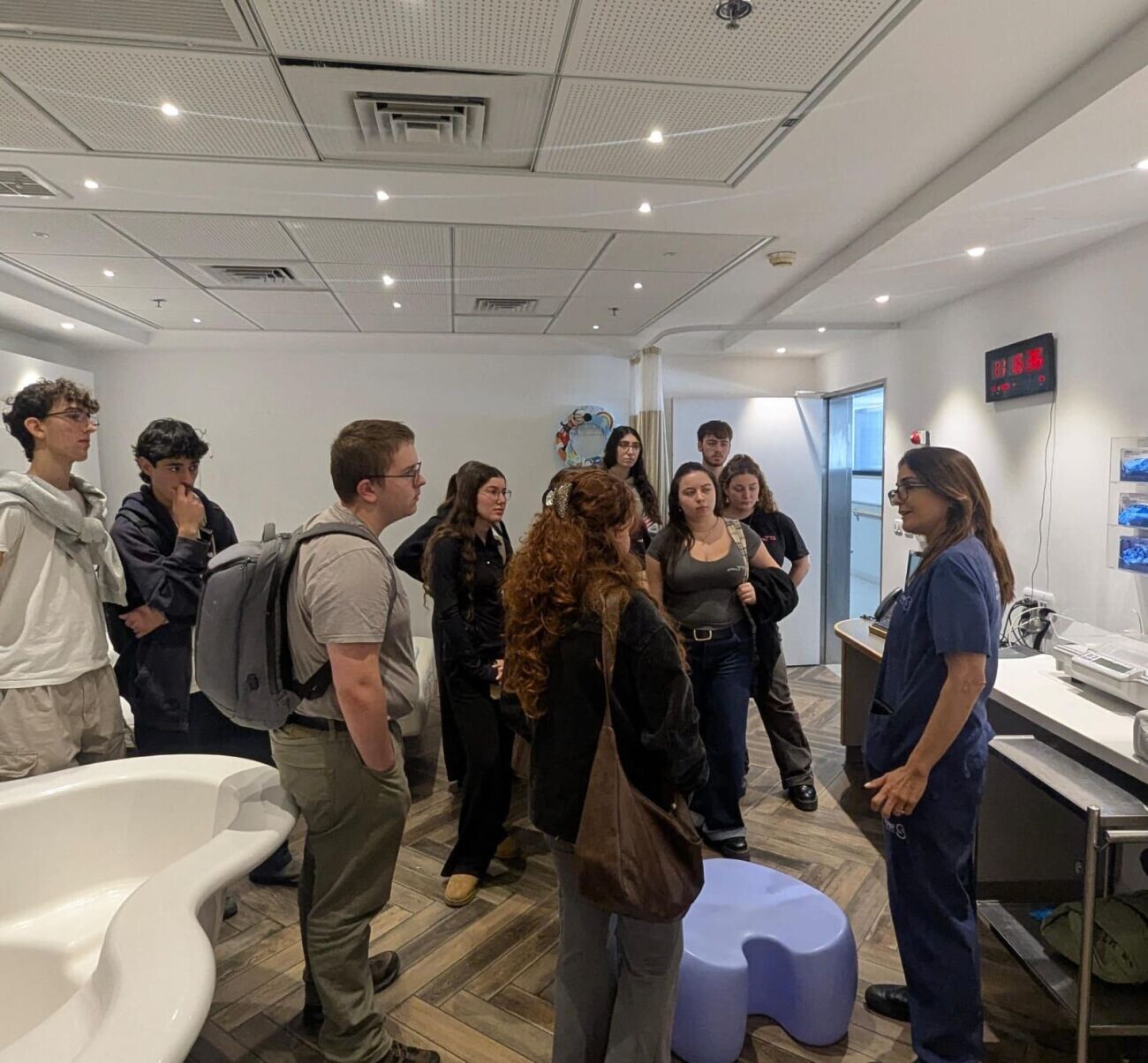 לאחר הביקור במעבדות, המשיך הסיור אל מחלקת היולדות. התלמידים סיירו בחדרי הלידה וזכו לראות את התוצאה המרגשת של התהליכים הרפואיים – תינוקות שנולדו בבית החולים שעות ספורות לפני הגעתם.