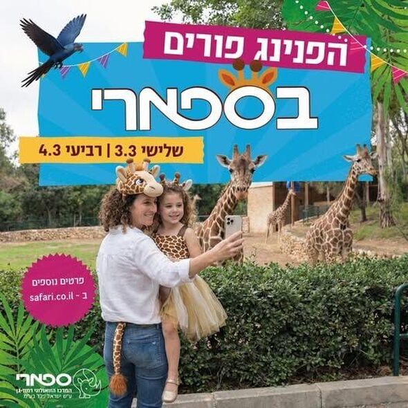 ספארי רמת גן מזמין את קהל המבקרים להפנינג פורים חגיגי המיועד לכל המשפחה. האירוע, שיתקיים בימים שלישי ורביעי, ה-3 וה-4 במרץ, יציע מגוון פעילויות ייחודיות באווירת החג.