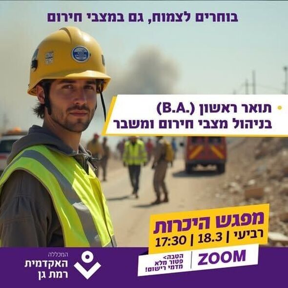 האקדמית רמת גן: מפגש היכרות מקוון לתואר ראשון בניהול מצבי חירום ומשבר ייערך היום (18.3)