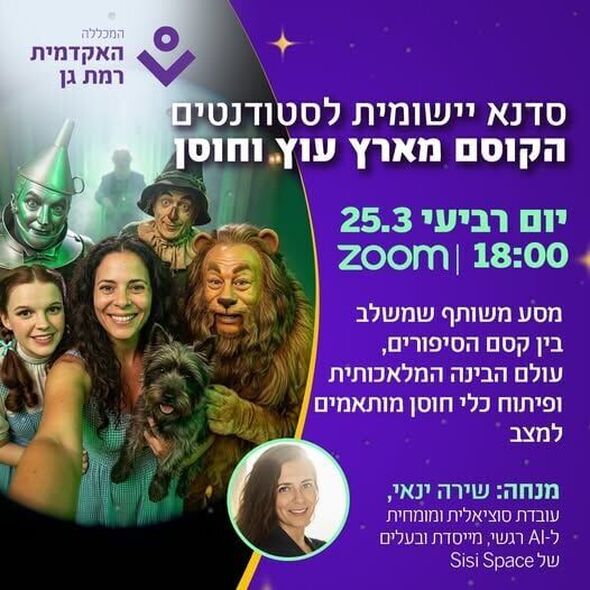 האקדמית רמת גן תקיים סדנת חוסן לסטודנטים המשלבת את "הקוסם מארץ עוץ" ובינה מלאכותית בתאריך ה-25.3