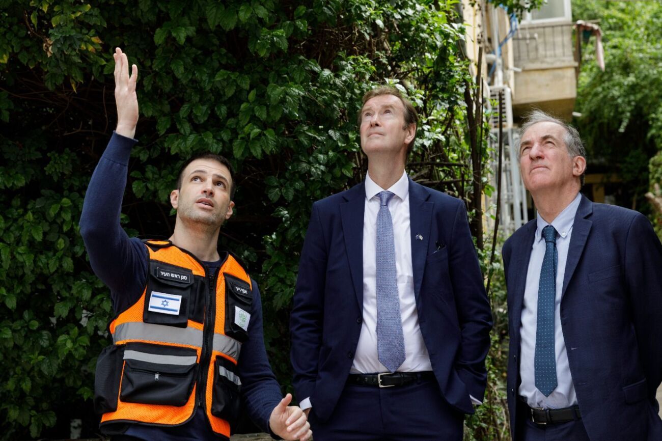 נציגי האיחוד האירופי בזירת פגיעת הטיל ברמת גן: ״מגנים בכל תוקף ירי חסר הבחנה לעבר אזרחים״