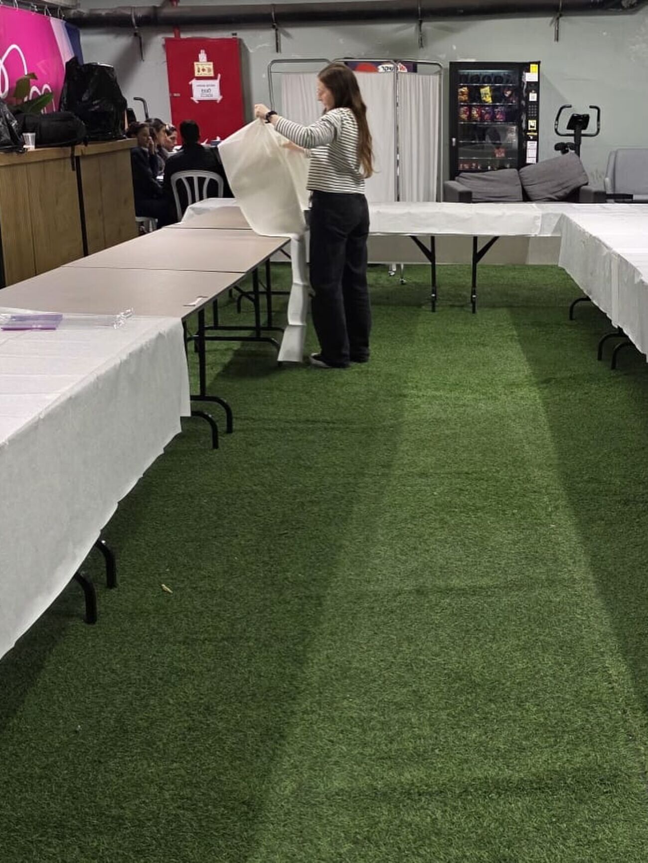 צוות "חווית האדם" של המרכז הרפואי לקח על עצמו את ארגון האירוע ודאג להכנת המקום. במסגרת ההכנות, סודרו השולחנות עם עריכות חגיגיות והגדות הפסח כבר הונחו על הכיסאות עבור החוגגים.