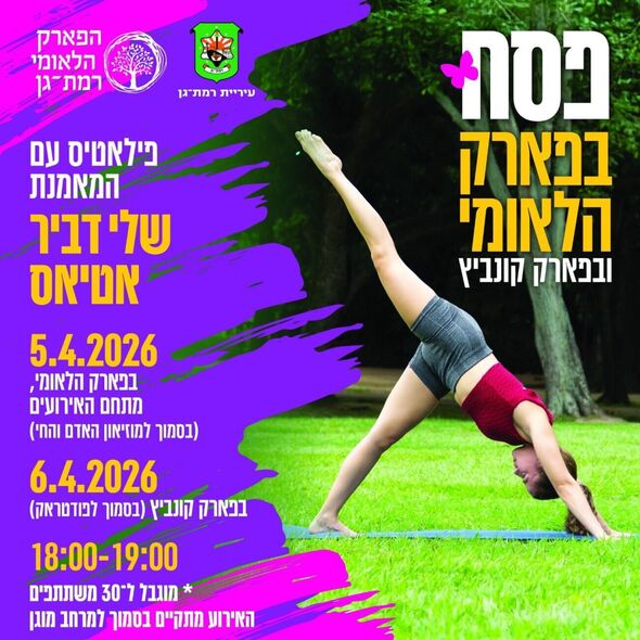 בחול המועד פסח יתקיימו פעילויות ספורט והפוגה מיוחדות ברמת גן, הכוללות אימוני פילאטיס וקבוצות ריצה. הפעילויות ייערכו בימים ראשון ושני, ה-5 וה-6 באפריל 2026, בין השעות 18:00 ל-19:00.