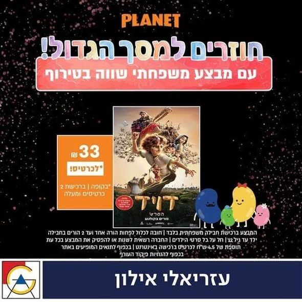 המסך הגדול ברמת גן חוזר: קולנוע פלאנט בעזריאלי אילון יוצא במבצע משפחתי לסרטי ילדים