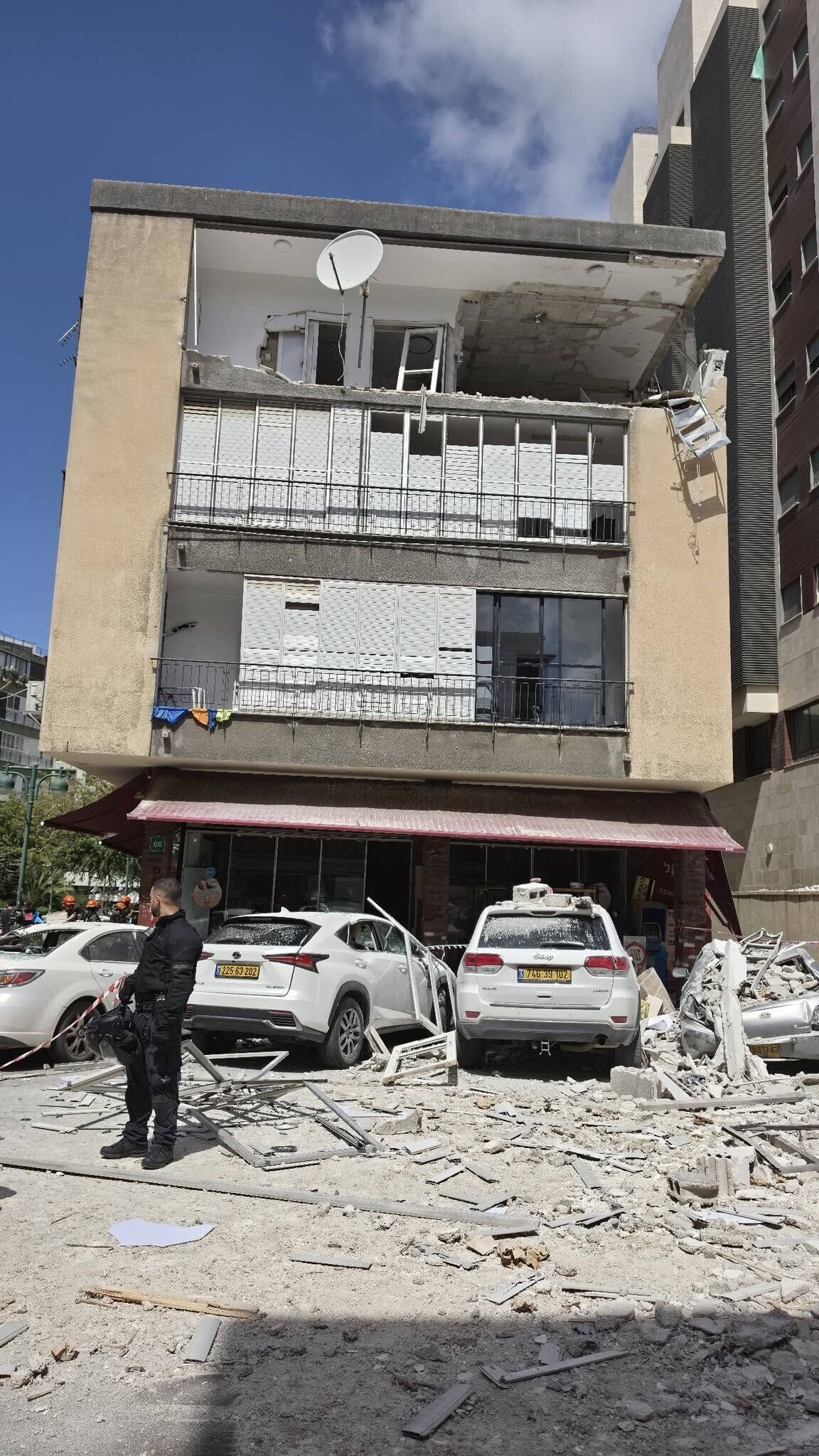 לאחר הפגיעה במרכז רמת גן: ההריסות פונו מהרחוב והבניין שניזוק נעטף בדגל ישראל