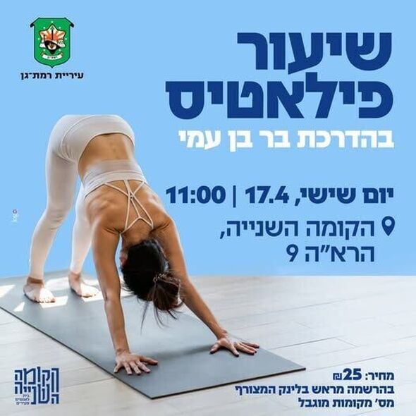 מרכז הצעירים "הקומה השנייה" ברמת גן מזמין את התושבים להשתתף בשיעור פילאטיס קבוצתי, שיתקיים ביום שישי, ה-17 באפריל, בשעה 11:00.