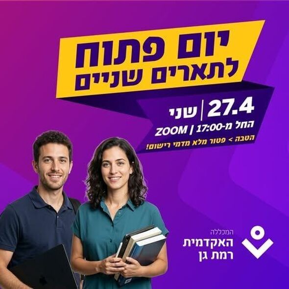 היום (27.4): יום פתוח לתארים שניים במכללה האקדמית רמת גן ייערך בזום עם רשום בחינם למצטרפים