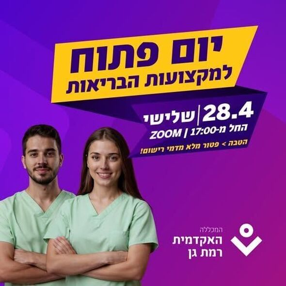 המכללה האקדמית רמת גן מקיימת יום פתוח מקוון למקצועות הבריאות היום (28.4)