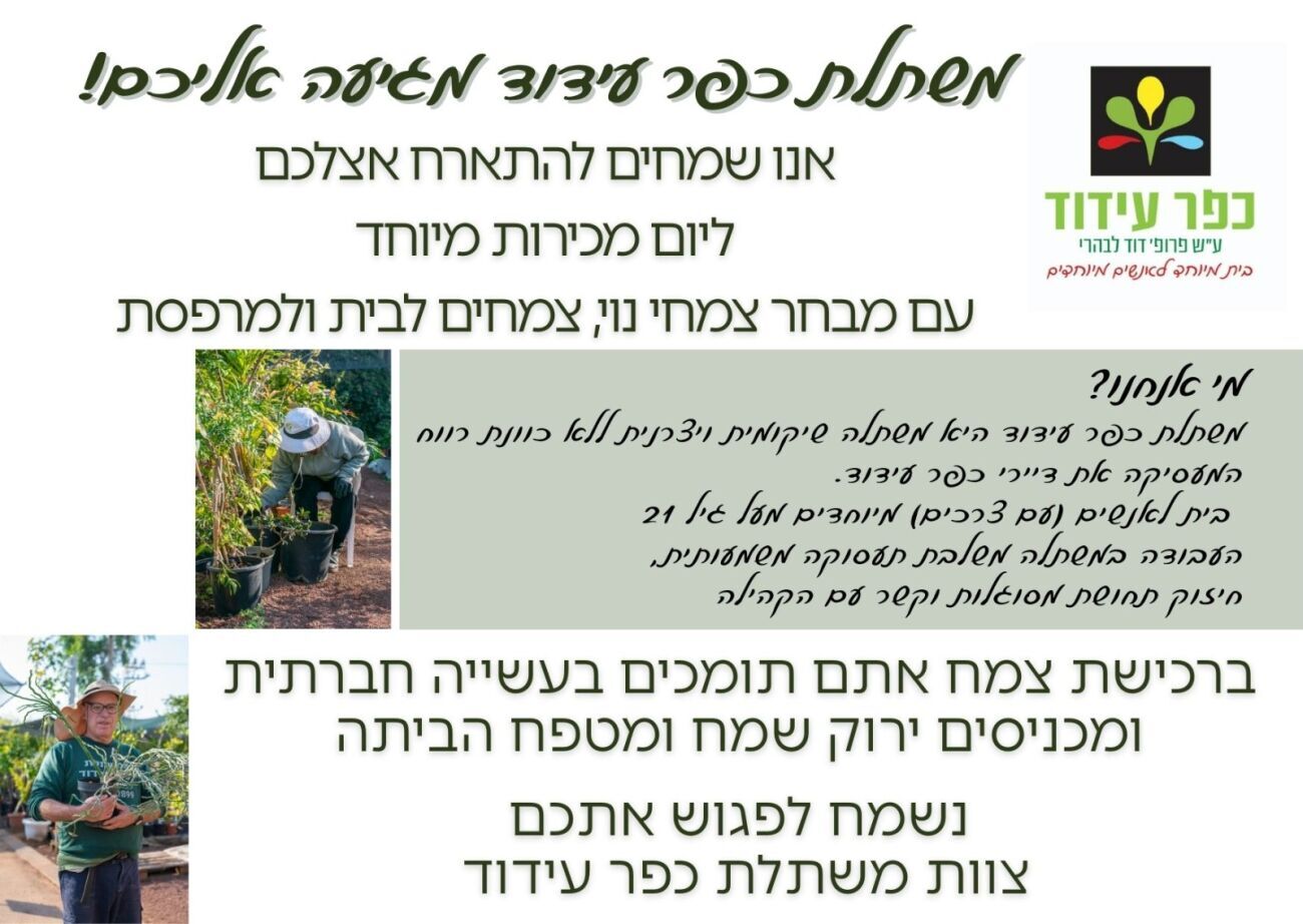 במהלך היום יפעל במקום שוק דוכנים של עמותות ומיזמים חברתיים, המציעים מוצרים ייחודיים שיוצרו על ידי אנשים עם צרכים מיוחדים. בין המציגים ניתן יהיה למצוא את "חמים ונעים" עם כריות חימום, משתלת כפר עידוד המציעה צמחי בית, פרחים, תבלינים ושתילי תות שדה, ומיזם HUB-ility עם מוצרים מחנות חברתית המקדמת תעסוקה עצמאית.