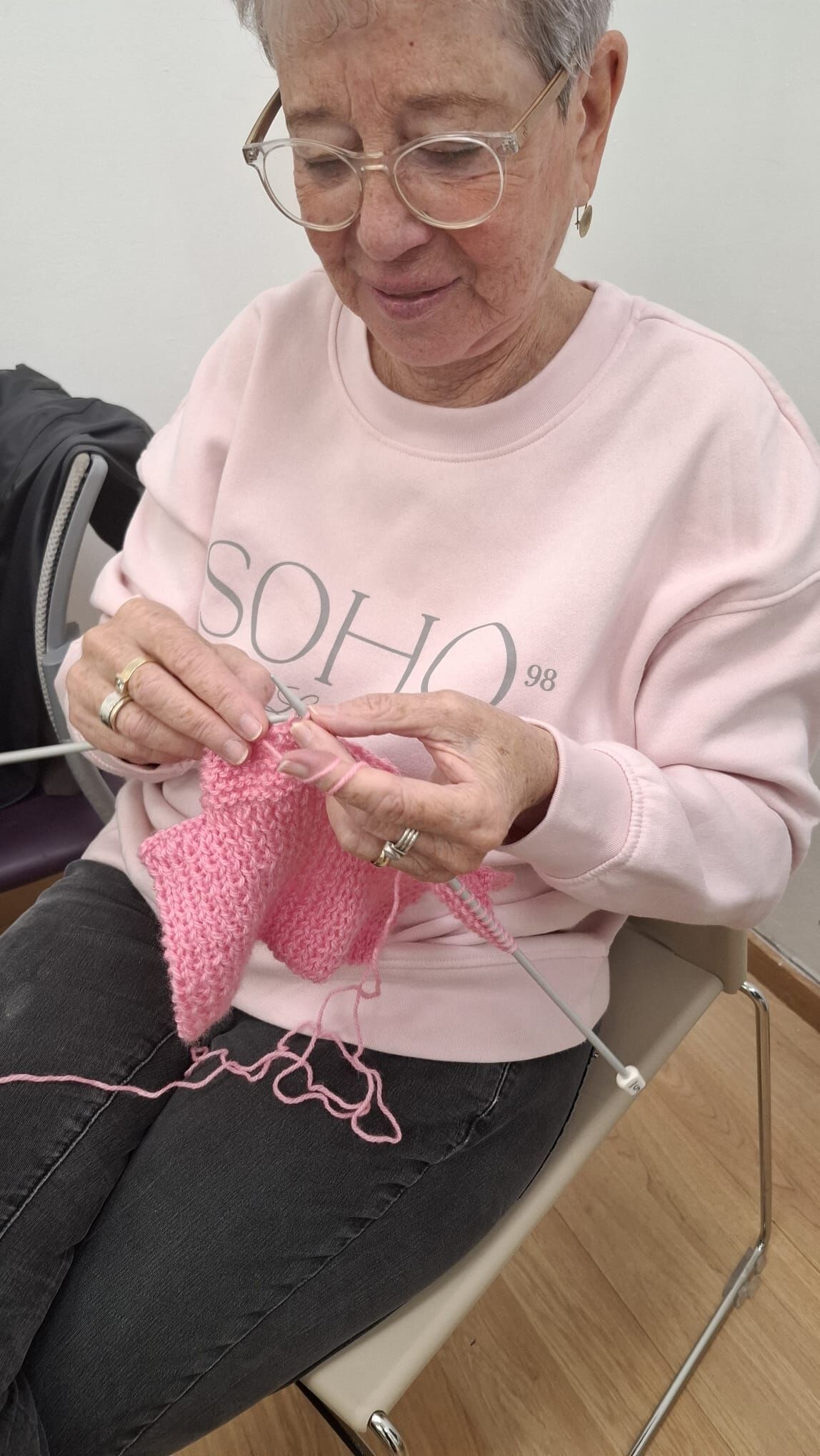 קבוצת הסריגה של מרכז רייך בתל אביב סרגה 24 כובעי צמר לחיילים